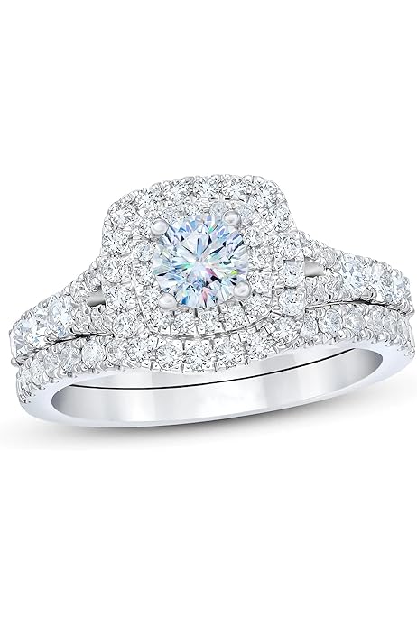 Amazon Com 1 1 2 Carat Ctw Bridal Set Moissanite Engagement Rings For Women Platinum Plated Silver Ring Moissanite Rings 3 5 Clothing Shoes Jewelry